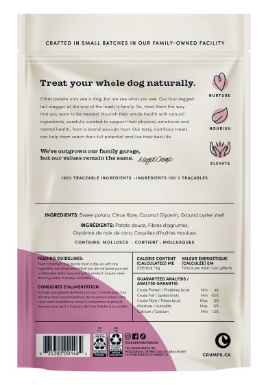 Ingredients: Sweet Potato, Citrus Fibre, Coconut Glycerin, Ground Oyster Shell