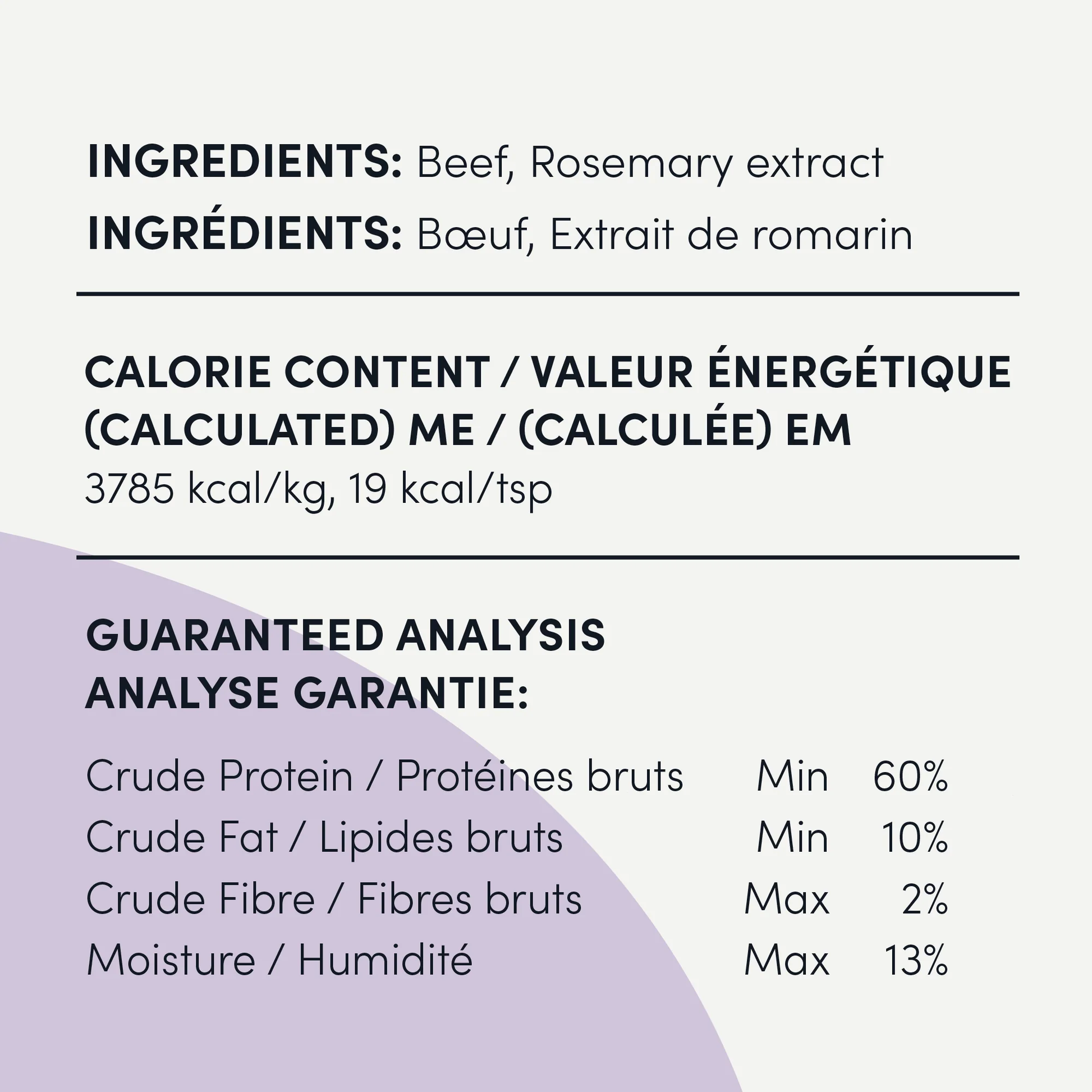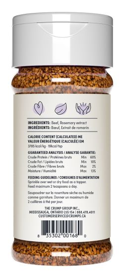 These new beef sprinkles are a versatile topper that adds excitement to your canine’s kibble, meals, and treats! This treat is great for using in recipes, toys, and toothpaste. Especially great for dogs on a special diet and perfect for disguising the taste of medicine. These delicious sprinkles are a high protein, low fat, nutritious, essential item for every pet parent to keep on hand.