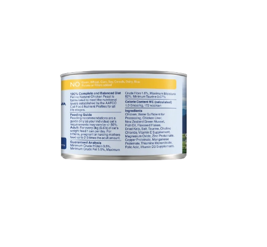 Ingredients: Chicken, Water Sufficient for Processing, Chicken Liver, New Zealand Green Mussel, Fish Oil, Flaxseed Flakes, Dried Kelp, Salt, Taurine, Choline Chloride, Vitamin E Supplement, Magnesium Oxide, Zinc Proteinate, Copper Proteinate, Manganese Proteinate, Thiamine Mononitrate, Folic Acid, Vitamin D3 Supplement.