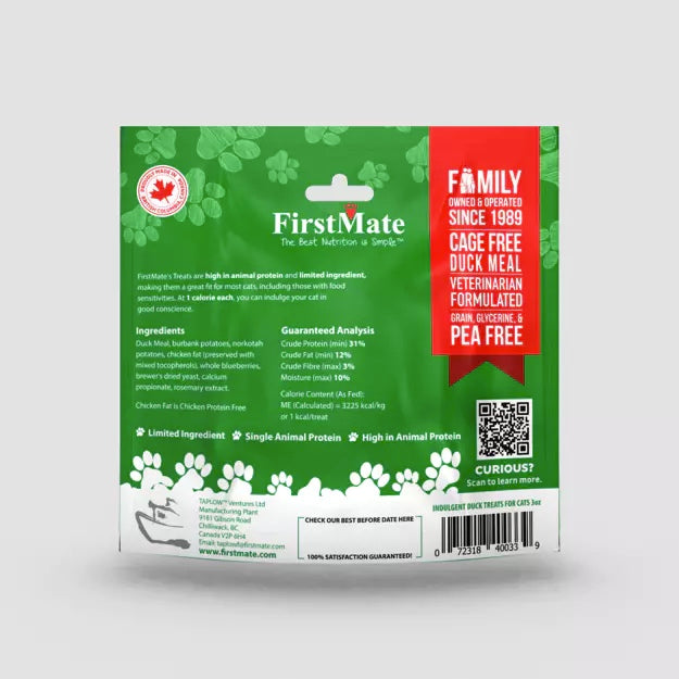 FirstMate Limited Ingredient Treats for cats are a high-quality, nutritious treat option for feline friends. Made with a single animal protein source and free of grains, glycerin, and peas, these treats are perfect for cats with sensitive stomachs or food allergies. The addition of blueberries provides antioxidants and promotes urinary health, while the veterinarian-formulated recipe ensures optimal nutrition. With just 1 calorie per treat, FirstMate Limited Ingredient are a healthy and guilt-free way to reward your cat.
