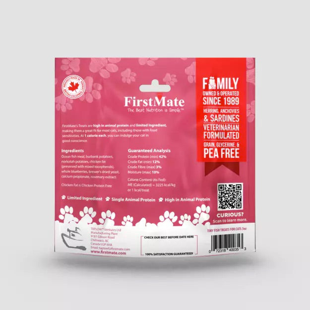 FirstMate Limited Ingredient Treats for cats are a high-quality, nutritious treat option for feline friends. Made with a single animal protein source and free of grains, glycerin, and peas, these treats are perfect for cats with sensitive stomachs or food allergies. The addition of blueberries provides antioxidants and promotes urinary health, while the veterinarian-formulated recipe ensures optimal nutrition. With just 1 calorie per treat, FirstMate Limited Ingredient are a healthy and guilt-free way to reward your cat.