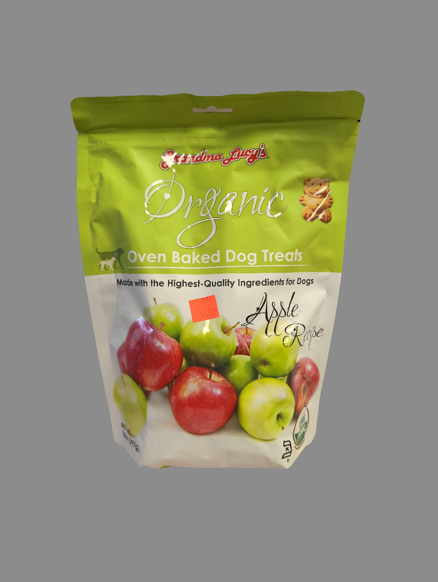 Grandma Lucy's organic dog treats are not made in a factory but baked in a bakery by people who love their pets!