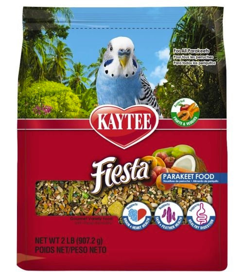 Kaytee Fiesta Parakeet food is a nutritionally fortified gourmet diet made of a premium blend of fruits, vegetables, seeds and grains offering maximum variety, fun and nutrition for pet birds. Fiesta contains prebiotics and probiotics to support digestive health and is formulated with your bird species in mind.